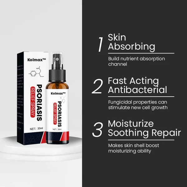 Kolmax™ সোরিয়াসিস রিলিফ স্প্রে 25 বছরেরও বেশি সময় ধরে হাজার হাজার রোগীর সোরিয়াসিসের লক্ষণগুলির সফলভাবে চিকিত্সা করেছে। Kolmax™ সোরিয়াসিস চিকিত্সা স্প্রে প্রদাহ কমিয়ে এবং আঁশ দূর করে ত্বকের চেহারা উন্নত করে। এটি জ্বালা কমায় এবং নতুন ত্বক কোষের বৃদ্ধি বিলম্বিত করে। এটি ব্যক্তির ত্বক এবং মানসিক স্বাস্থ্যের জন্য উপকারী।