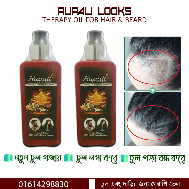 তাই চুল পড়া কমাতে আজই ব্যবহার করুন রুপালি লুকস থেরাপি তেল।